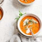 This creamy tomato soup is completely dairy free but you'd never be able to tell from the taste! Plus it's loaded with fresh ingredients and ready in only 30 minutes.