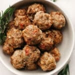 These breakfast sausage meatballs are the perfect combination of sweet and savory. They're made with ground turkey, baked, and absolutely delicious for meal prep!
