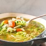 This Chicken Zoodle Soup uses zucchini noodles so it's light yet packed full of flavor! Whole30, dairy free, and gluten free!