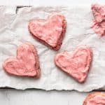 These strawberry cookies are made with freeze dried strawberries and topped with a dye free (and perfectly pink!) icing.