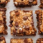 These chocolate chip oatmeal bars are thick, chewy, and made with surprisingly healthy ingredients. You'll love every chocolatey bite of this sweet dessert or snack!