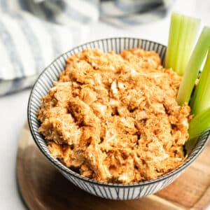 I can’t even tell you how often I make this for guests. It’s definitely the appetizer I make the most and it’s high requested by my friends, husband, and son. If you love buffalo chicken, make this dip!
