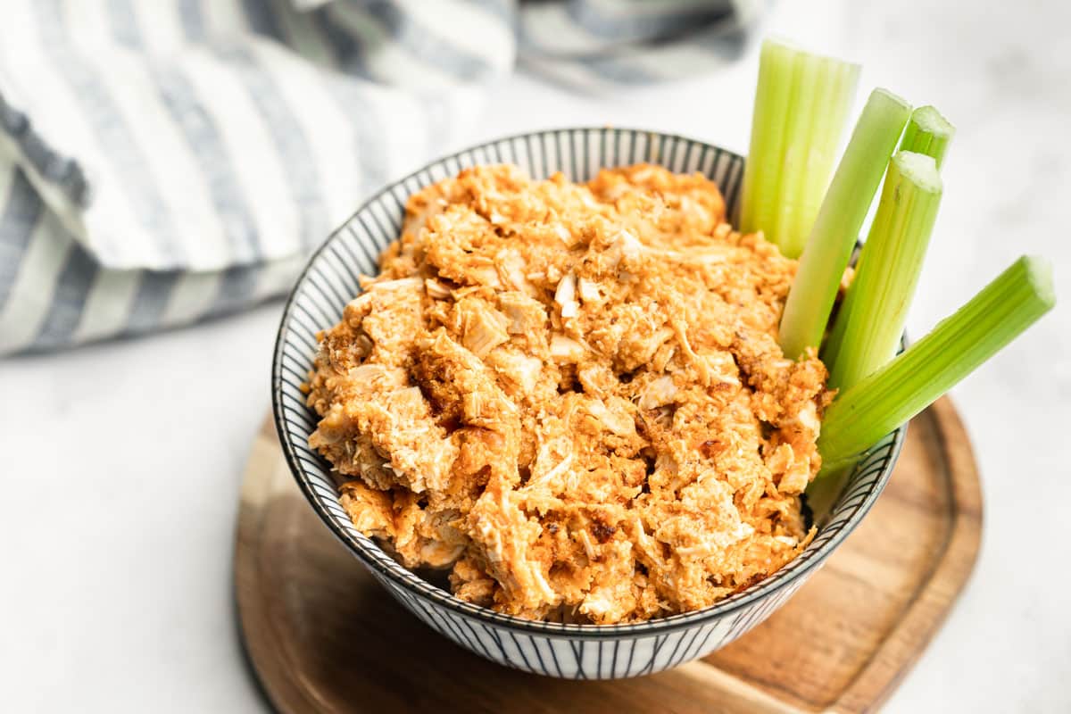 - If you have a little extra time boil or sautรฉ skinless and boneless chicken breasts. Then use a fork to shred the cooked chicken before adding to the dip. You can do this step the day before if you like.