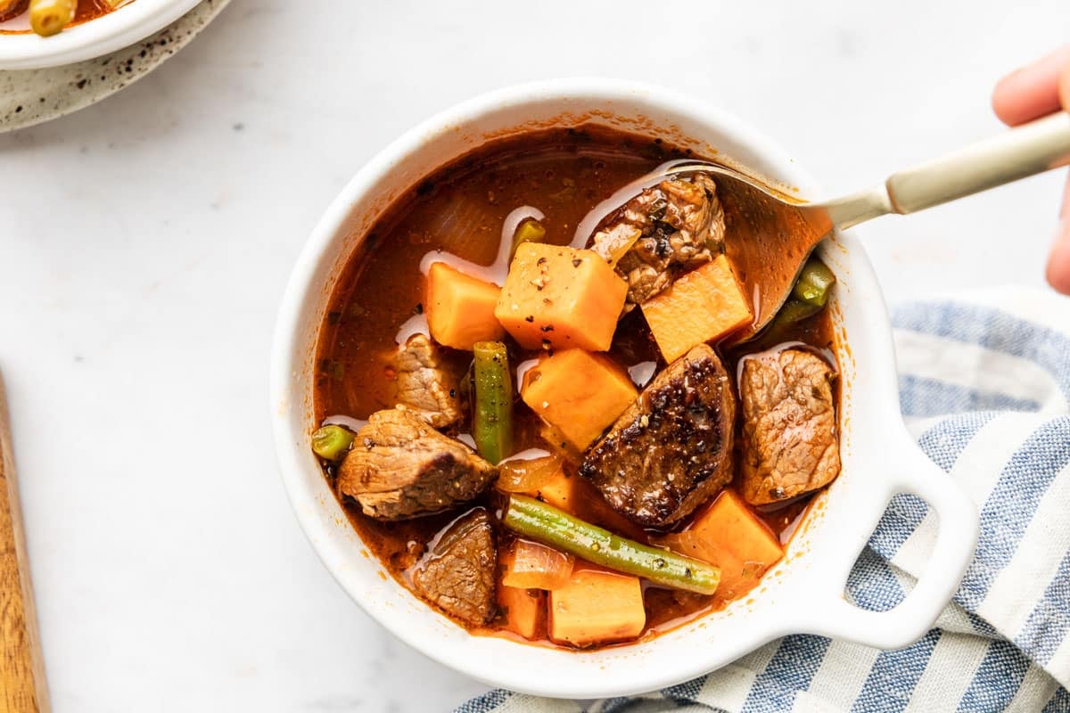 This hearty soup is ready in only 30 minutes with sirloin steak, a rich broth, veggies, and tender pieces of sweet potato. It’s a comforting meal you’ll want to make often!