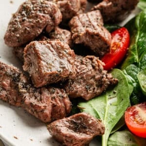 These juicy steak bites cook quickly in the air fryer. They’re tender, flavorful, and simply seasoned! Ready in just 15 minutes!