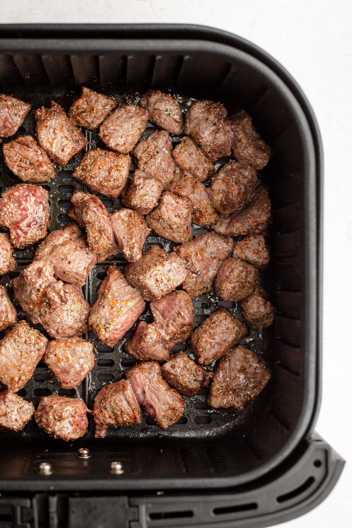 You can also freeze these juicy air fryer steak bites in a freezer safe container for up to 3 months.