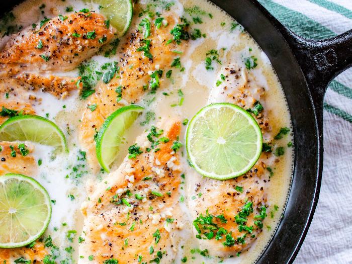 This Coconut Lime Chicken is a quick entree that earns rave reviews! The light and creamy sauce includes a bright burst of lime flavor you’re going to love.