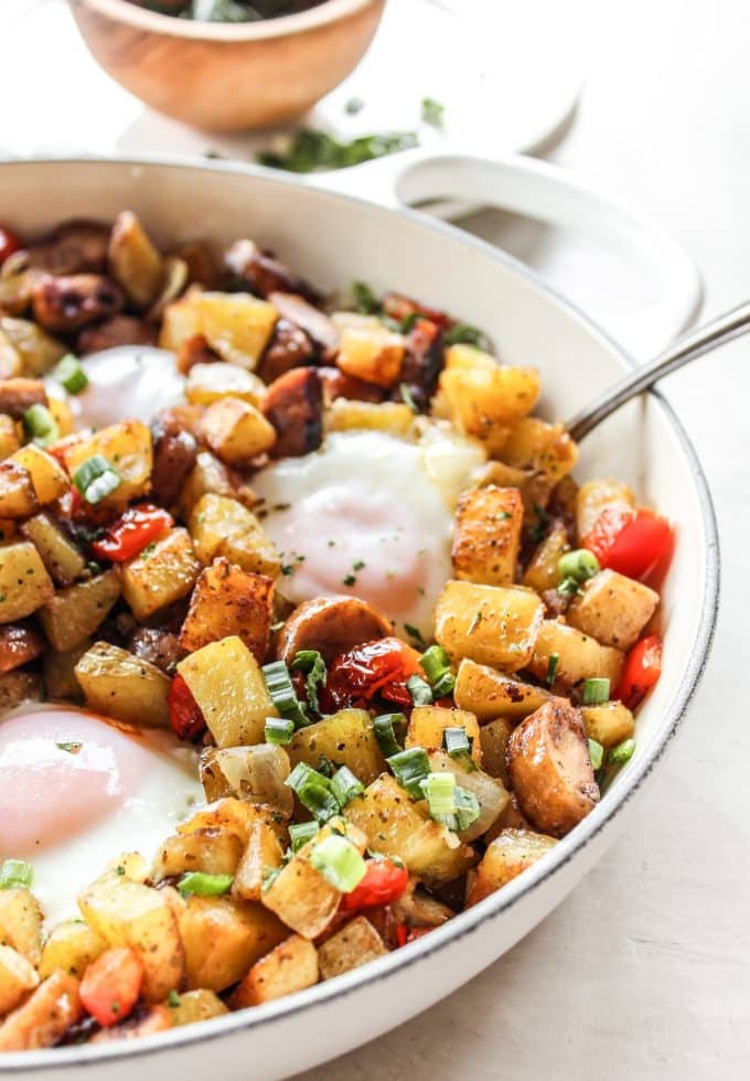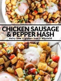 I truly make skillet potatoes several times a week. I love them so. My favorite way to enjoy them is in a hash and this Chicken Sausage & Pepper Hash has been my preferred vehicle for those potatoes. Gah, this is so good, friend!