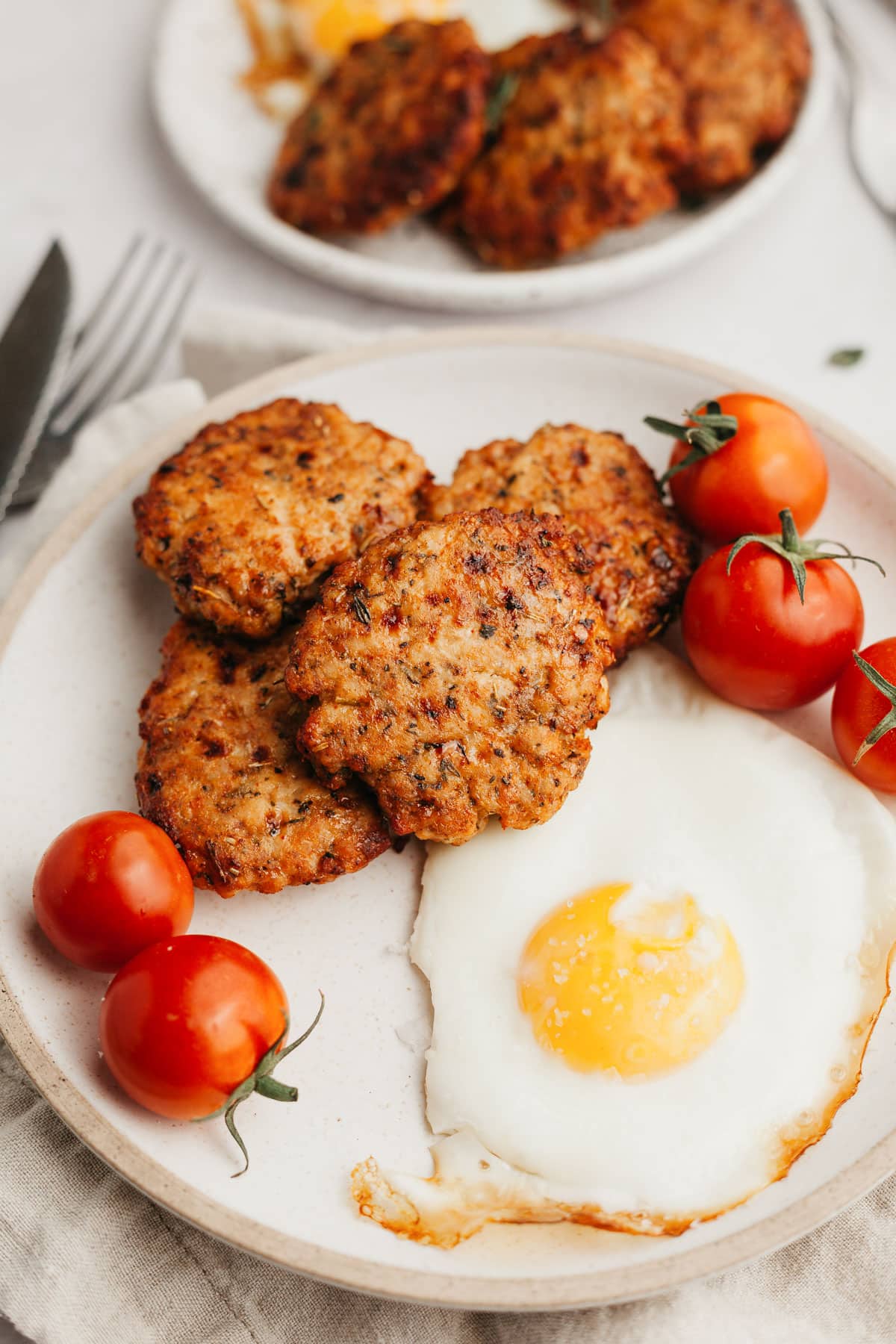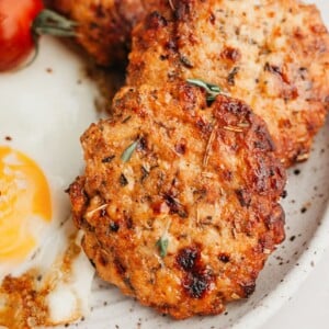 For me the perfect savory breakfast includes eggs, a protein like sausage or turkey bacon, and veggies or potatoes. When I share my breakfast creations on instagram stories I often receive dms that say something like “I’d love to eat that too but I don’t have time in the morning to make it”. Friend, this Air Fryer Turkey Breakfast Sausage recipe is so good as a make ahead protein. You can whip it up on the weekend and store it in the freezer. Then simply reheat a patty or two on a weekday morning.