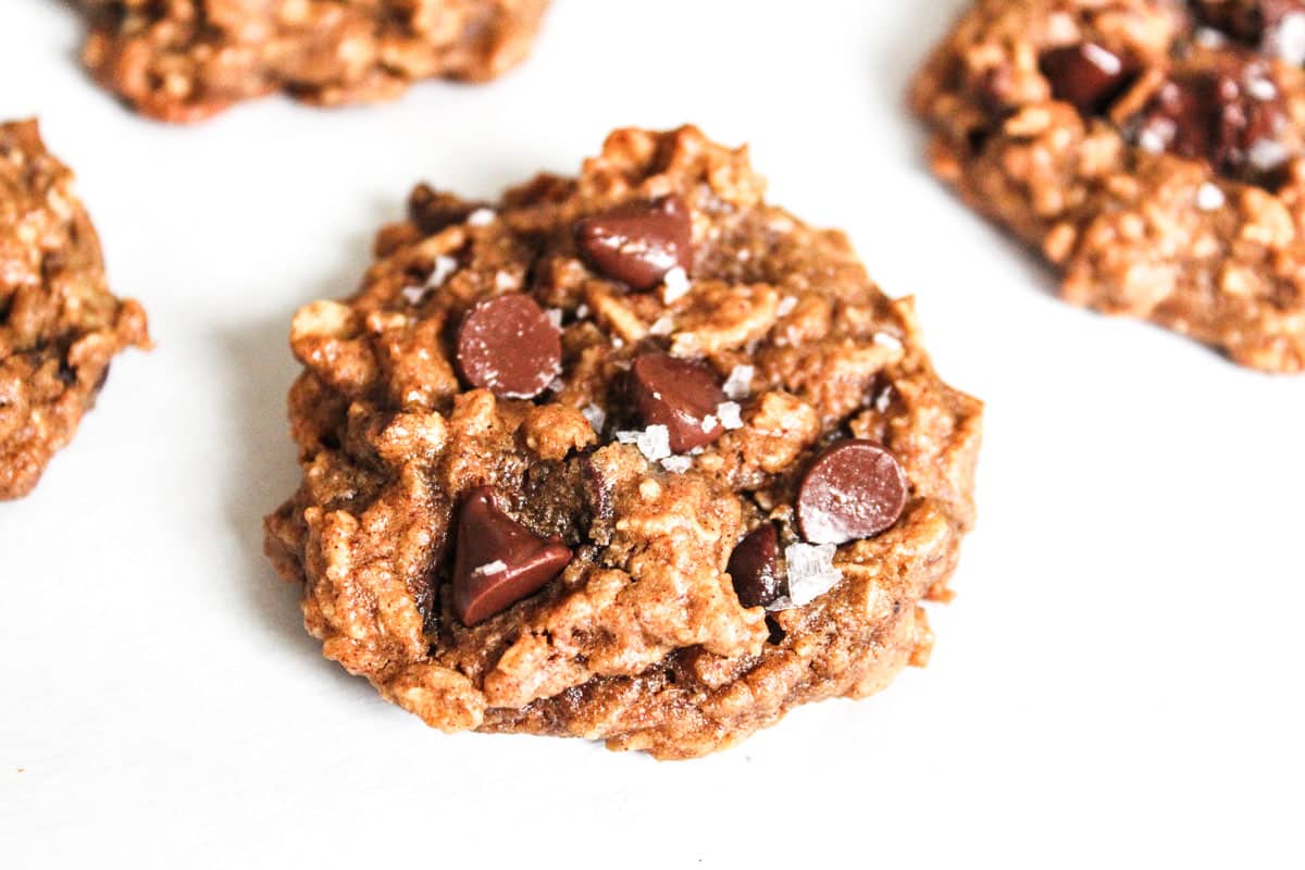 Almond butter oatmeal chocolate chip cookies are made without white flour and require only 8 ingredients! They're so easy and kid-friendly. They're healthy enough to serve as an after school snack but they taste indulgent.