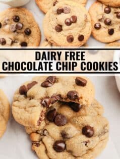 These dairy free chocolate chip cookies have the perfect texture with crispy edges and a chewy middle. They require only 9 simple ingredients and no chill time! Plus they’re ready in less than 20 minutes.