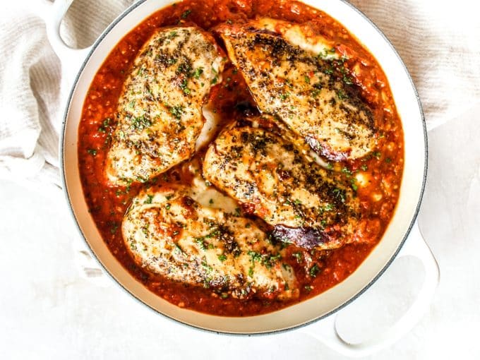This sautéed chicken is well seasoned, stuffed with gooey mozzarella, and simmers in a simple tomato sauce. Adults and kids alike go crazy for this entree that looks complicated but is so easy to make!