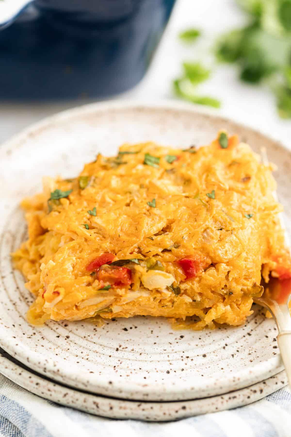My Buffalo Ranch Chicken Casserole is super creamy and looks cheesy but there’s absolutely no cheese in it. In fact it’s dairy free and uses spaghetti squash instead of traditional spaghetti noodles. Have I blown your mind yet?