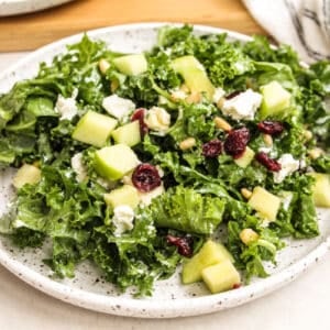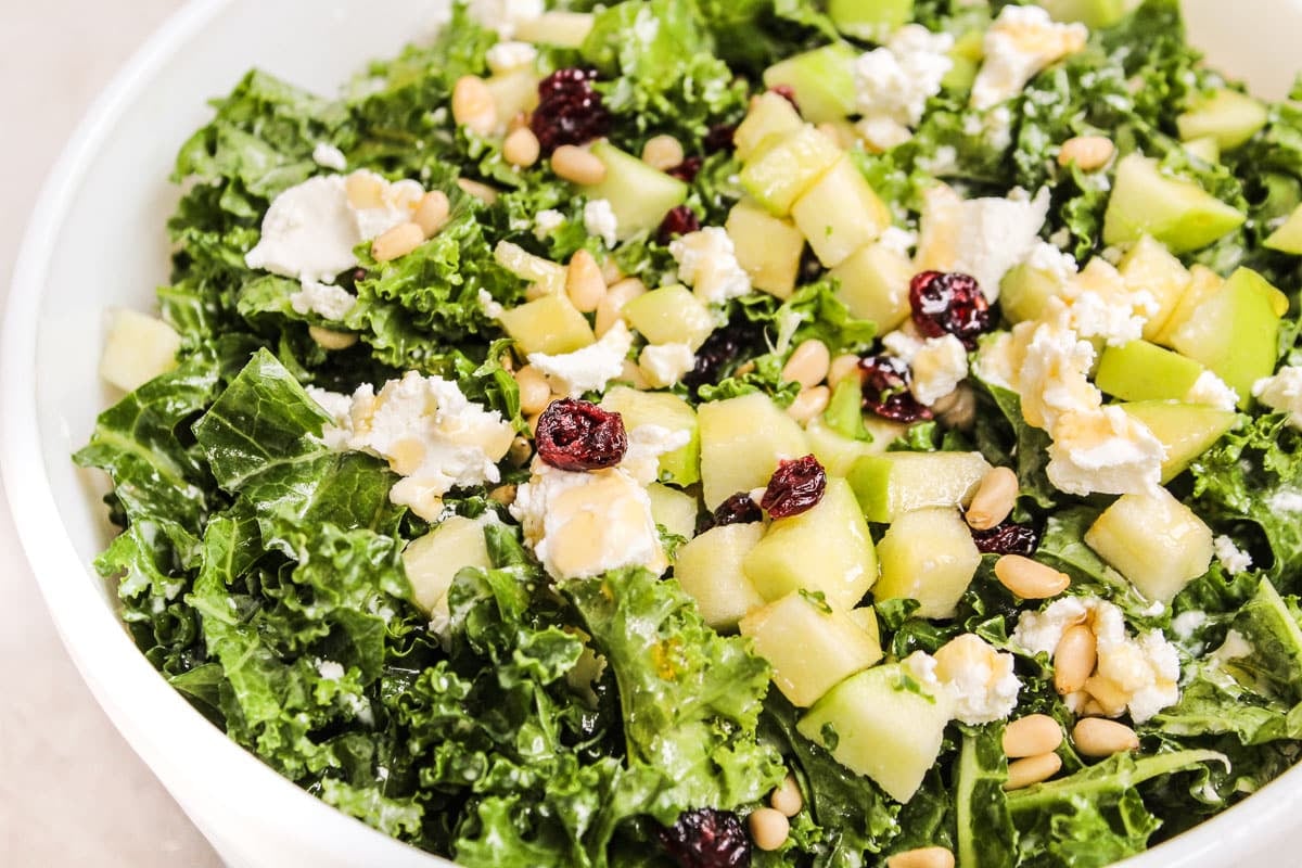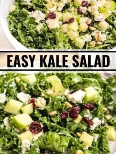 You’re going to want to make this craveable kale salad again and again. Goat cheese, apples, cranberries, pine nuts, and the easiest honey lemon dressing… it’s an incredible side dish or light entree!