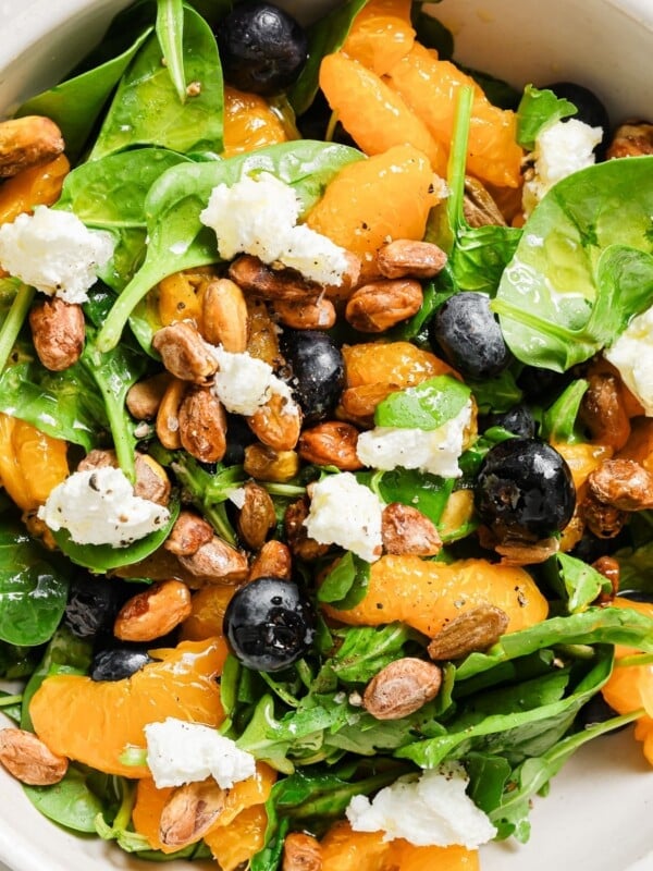 Fresh blueberries, mandarin oranges, goat cheese, and pistachios make this simple salad extra special. Top with my homemade honey citrus dressing and enjoy as an entree or side dish!