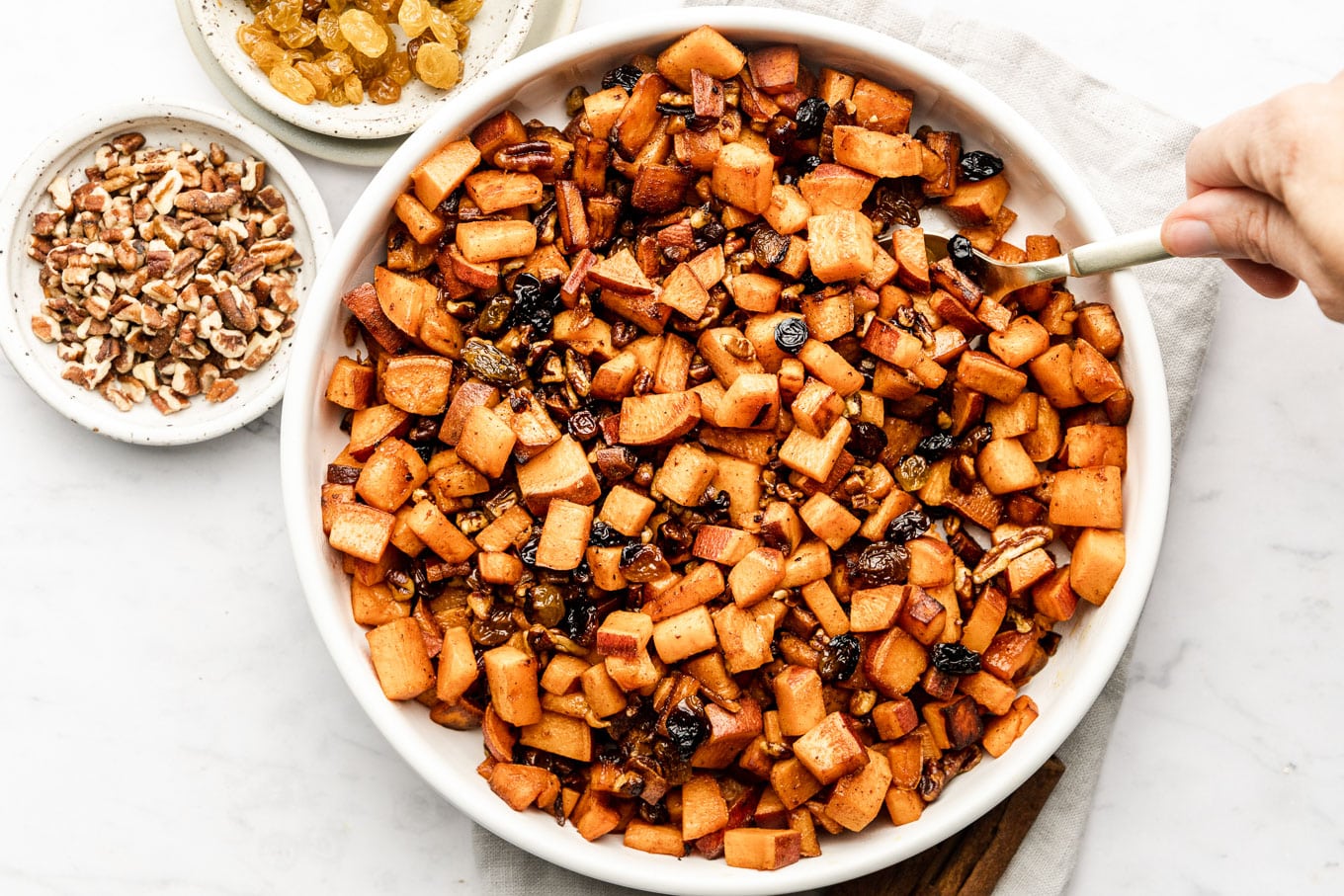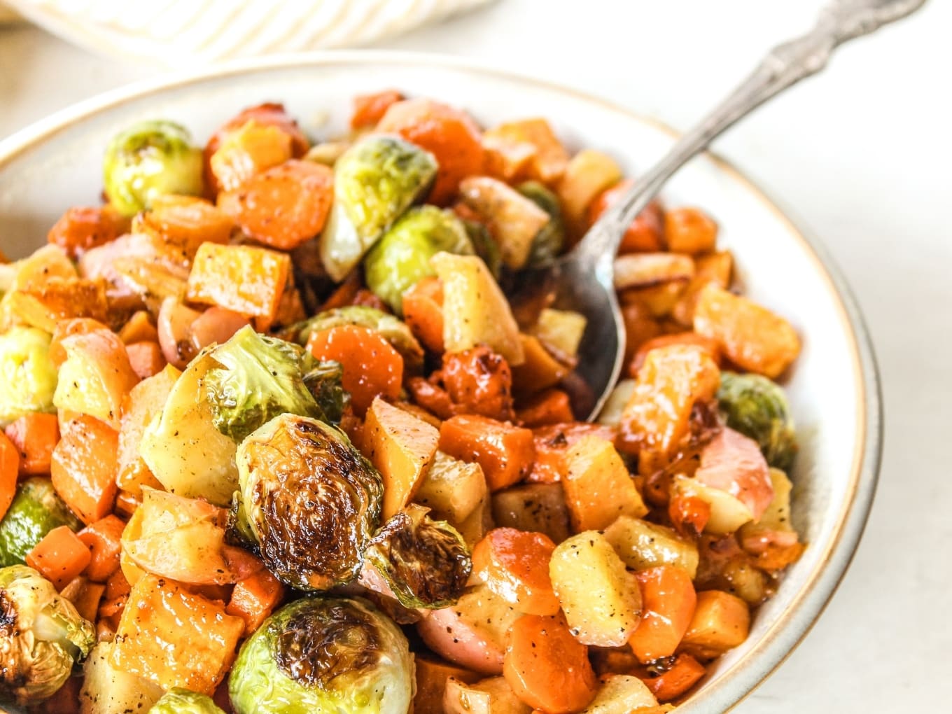 These veggies are lightly sweetened with maple syrup and diced apples. They're perfectly tender too! While this side is easy enough to throw together on a busy weeknight, it tastes extra special and worthy of a holiday meal.