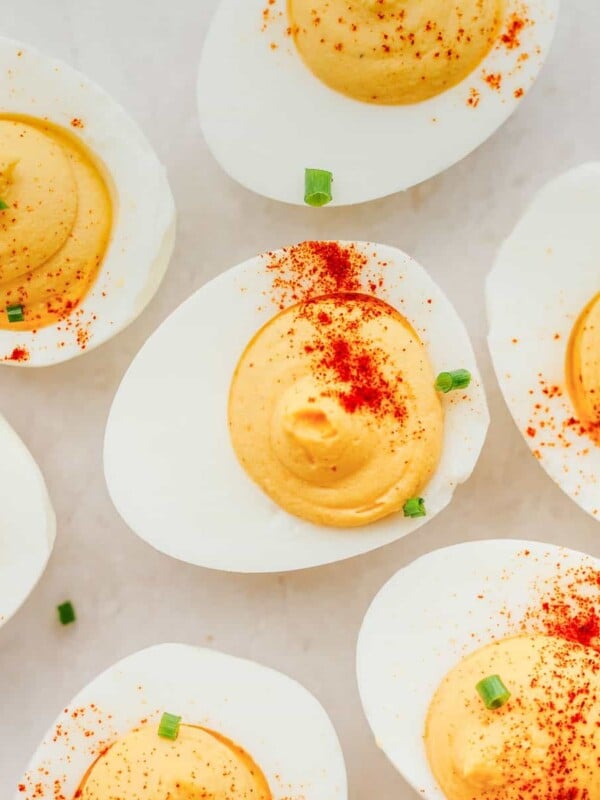 These classic deviled eggs are made with hard boiled eggs, mayo, mustard, salt, pepper, and a little bit of paprika. It's an easy appetizer that is perfect for the holidays, Easter, brunch, or a potluck.