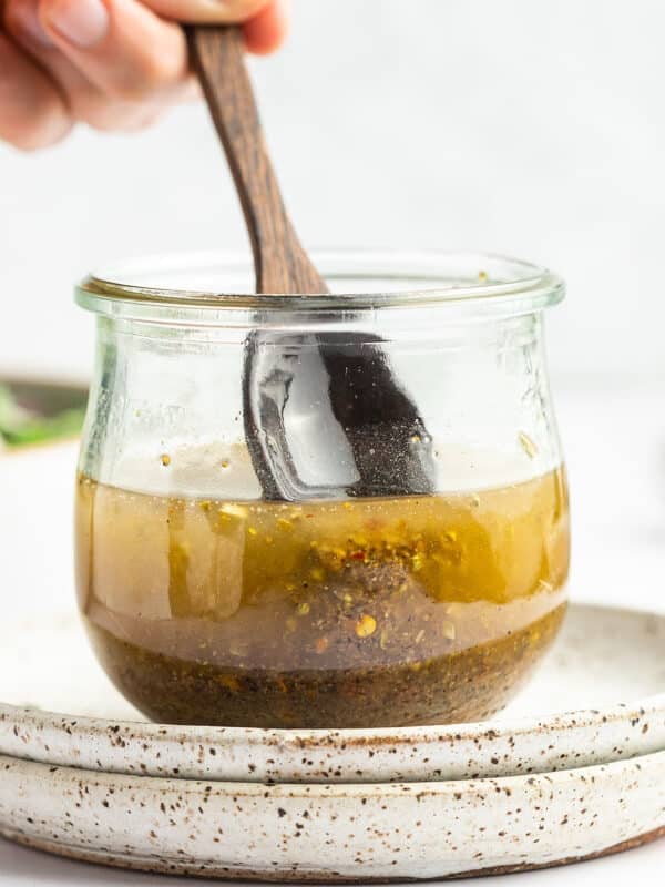 This Easy Homemade Italian Dressing is so tasty and simple! Plus it's Whole30, gluten free, sugar free, and dairy free. Perfect on salads or as a marinade!