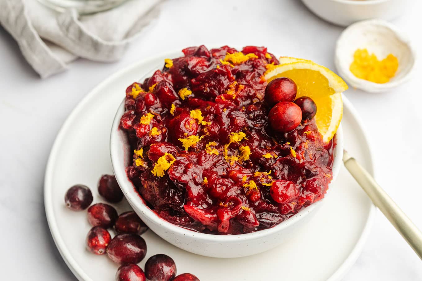 Thanksgiving Day isn't complete without homemade cranberry sauce. This classic holiday side dish is lightly sweetened with honey, requires only 5 ingredients, and is so easy to make! You'll love this bright addition to your Thanksgiving meal!