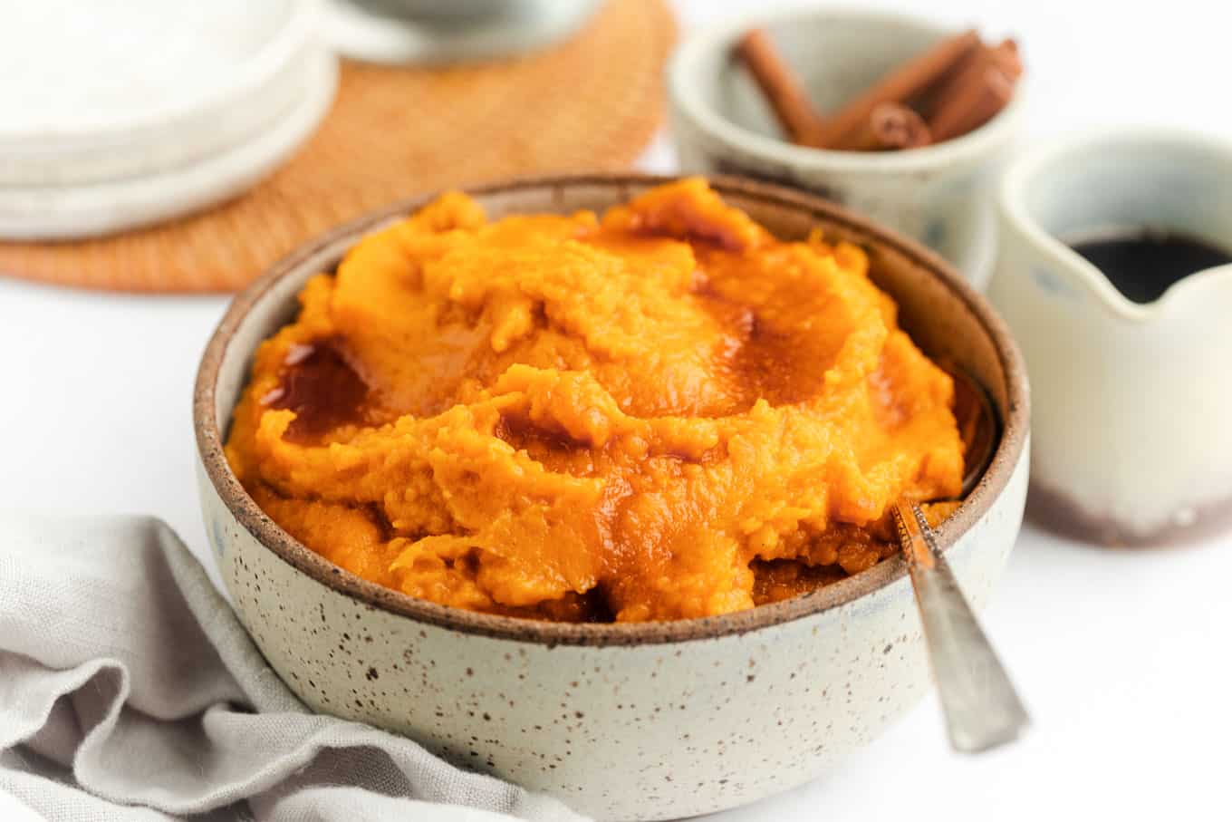 These creamy mashed sweet potatoes are made special with cinnamon and maple syrup. This side dish is easy to make but always impresses. You'll really love this new way to enjoy sweet potatoes for the holidays!