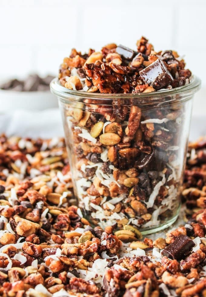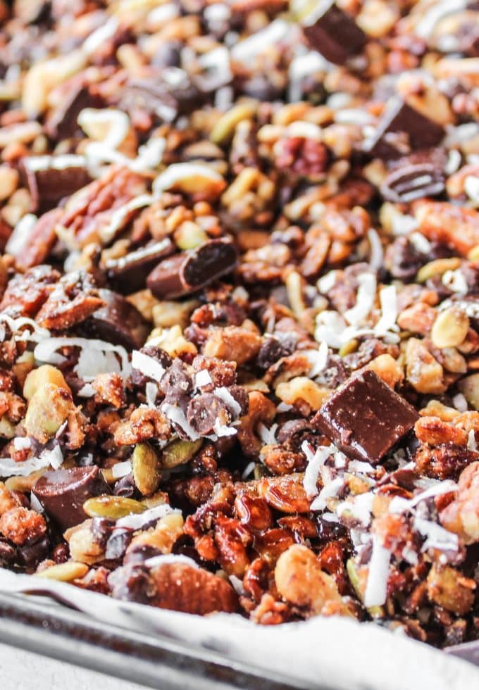 This Grain Free Chocolate Chunk Granola is so dang good. I can’t wait for you to try it.