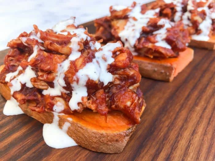 Barbecue Chicken on Sweet Potato “Toast”