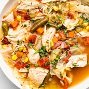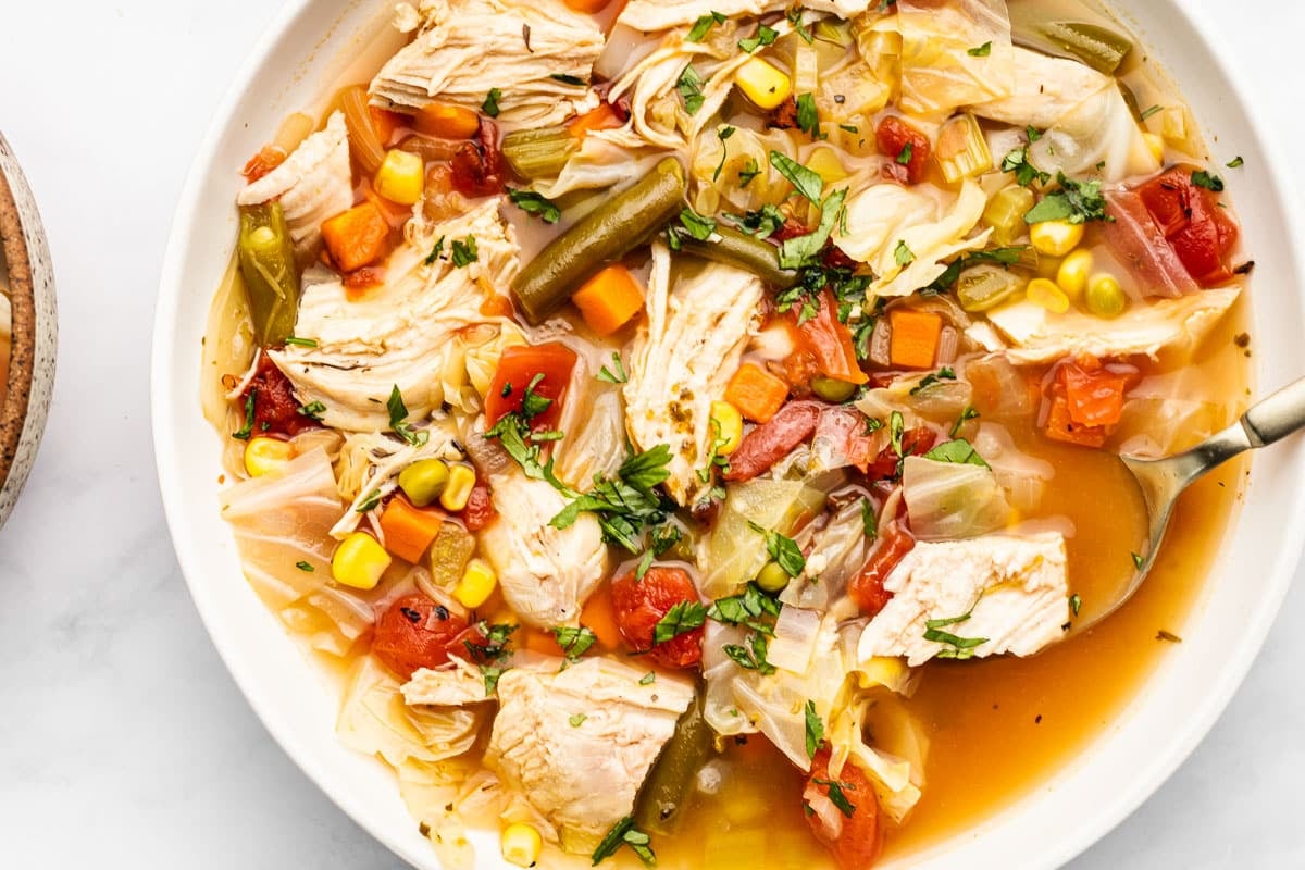 Healthy chicken vegetable soup is an easy recipe that’s loaded with veggies and tender chicken. It’s a great option for meal prep and fast enough to make any night of the week!