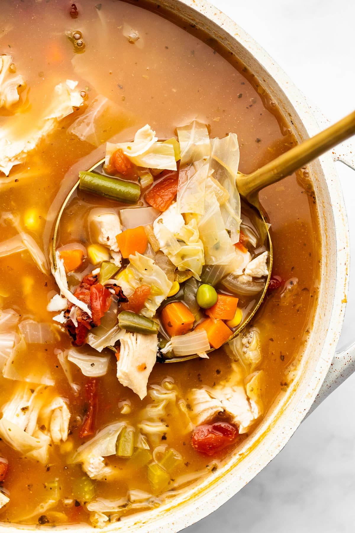 Want to enjoy this healthy chicken vegetable soup recipe the next day or later in the week? Leftover soup can be stored in an airtight container in the refrigerator for up to 3-4 days. Reheat on the stovetop on low to medium heat until warmed through. You can also reheat in the microwave after thawing.