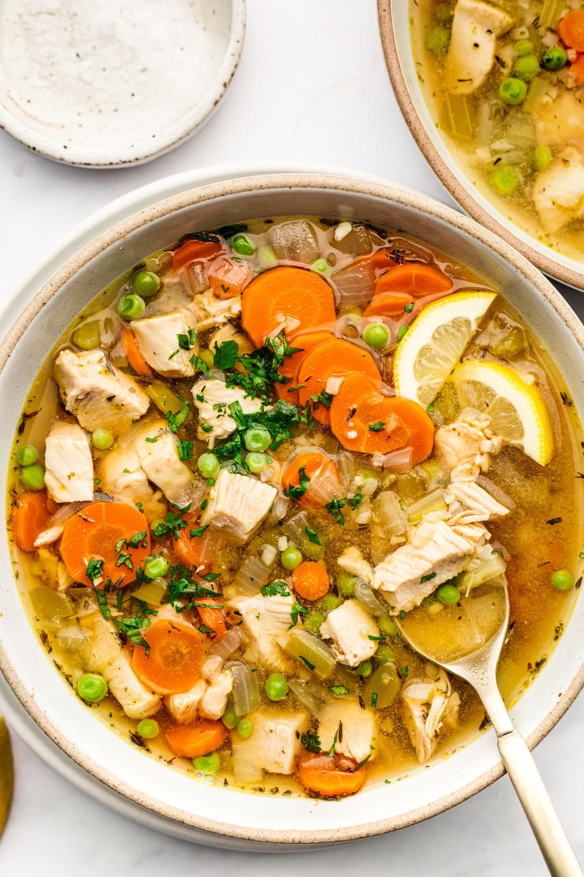 - Chicken breasts or thighs (boneless): Weโre using boneless skinless chicken breasts or boneless chicken thighs (if youโd prefer dark meat) in this soup. Itโs a lean protein that flavors the soup base as it simmers. To save cooking time you can also purchase store-bought rotisserie chicken or leftover chicken. These are great options to make your life even easier! Just add the cooked shredded chicken at the end of cooking.