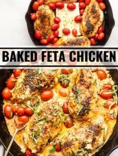 This easy chicken dish is sure to become a favorite in your home! The chicken is so flavorful and bakes in the dreamiest feta sauce with plenty of tomatoes and garlic. A truly restaurant-quality entree you’ll want to make again and again!