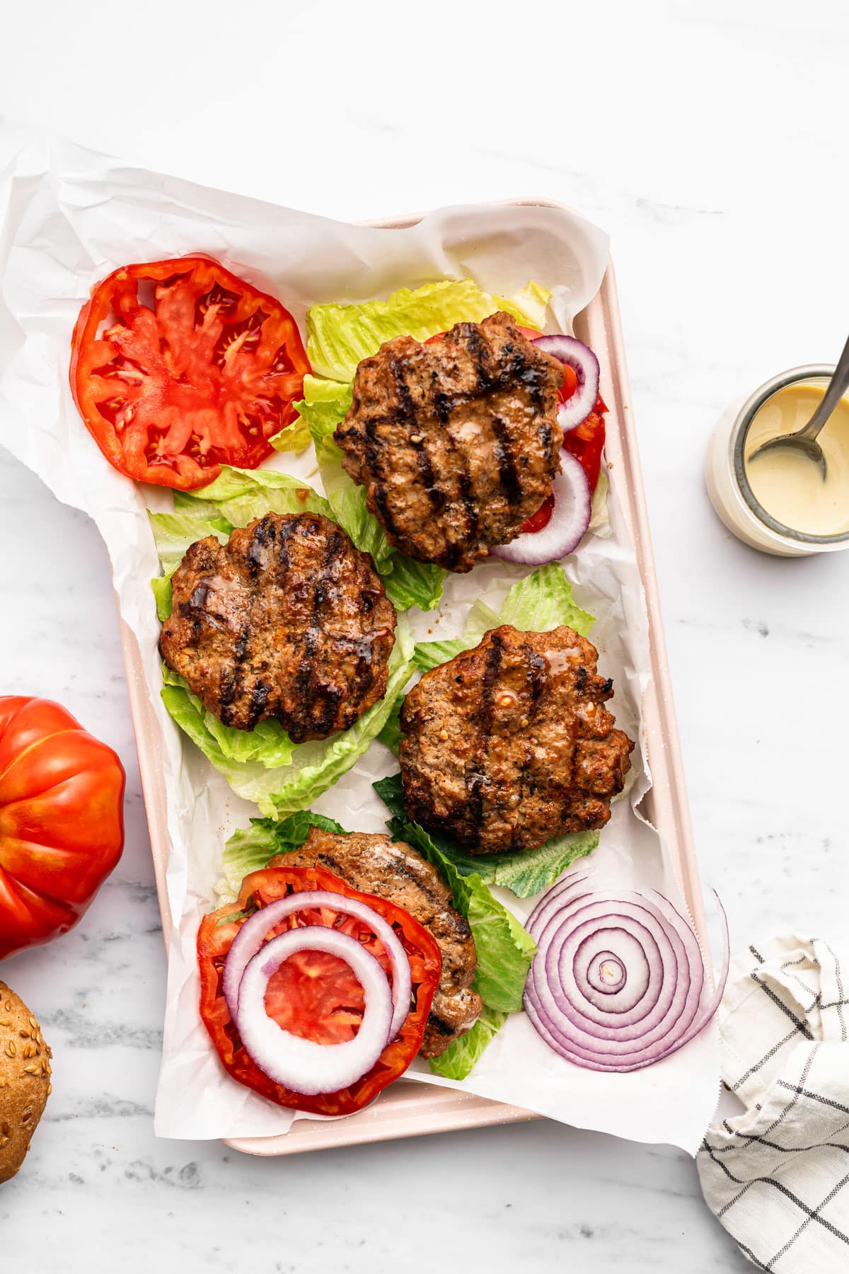 Add your favorite burger toppings like tomato, lettuce, red onion, or avocado. Don’t forget my 3-Ingredient Honey Mustard (seen in these photos). It’s so simple and really amps up the mustard flavor!