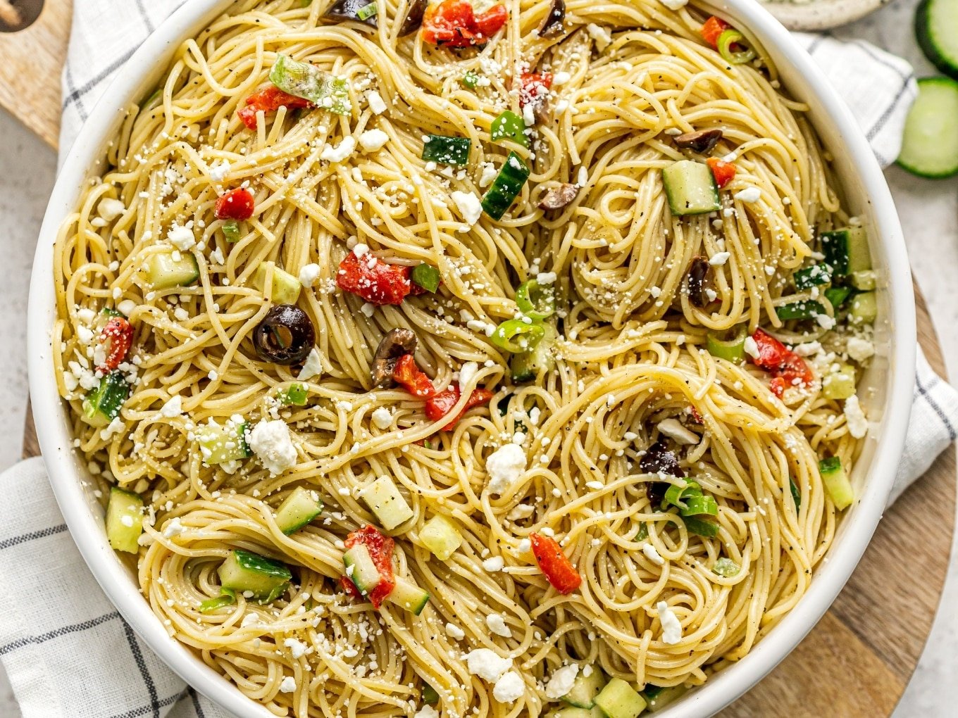 This simple pasta salad is easy to throw together and perfect for entertaining or making ahead of time for a week's worth of lunches. I love to prepare it the day before so the flavors can develop overnight.