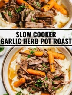 Is there anything better than pot roast on a cold evening? I think not. It’s filling and warms you from the inside out. If you feel the same you’re going to love this Slow Cooker Garlic Herb Pot Roast.
