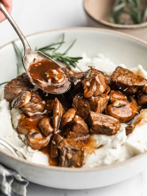 Skillet Steak Bites in Mushroom Gravy