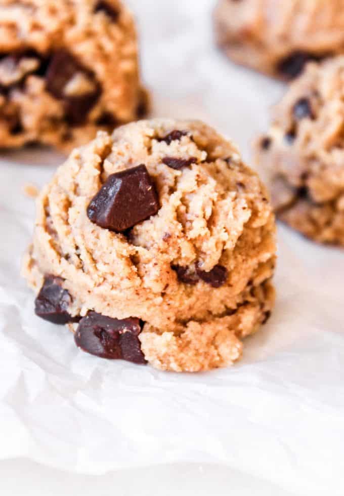These cookie dough bites are grain free, egg free, incredibly easy, and ready in under 10 minutes. Perfect for a quick snack or dessert!
