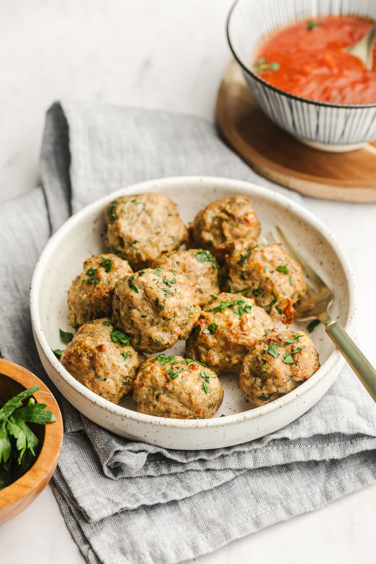 These meatballs are healthy (made with turkey and without breadcrumbs!) and are beautifully flavored with dried herbs and seasonings.