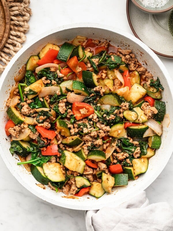 Craving more one pan dinners? Try my 20-Minute Sausage and Zucchini Skillet, Easy Ground Chicken and Green Bean Stir Fry, or Sheet Pan Chicken and Cabbage Stir Fry. I also recommend my Spicy Sausage and Cabbage Soup.