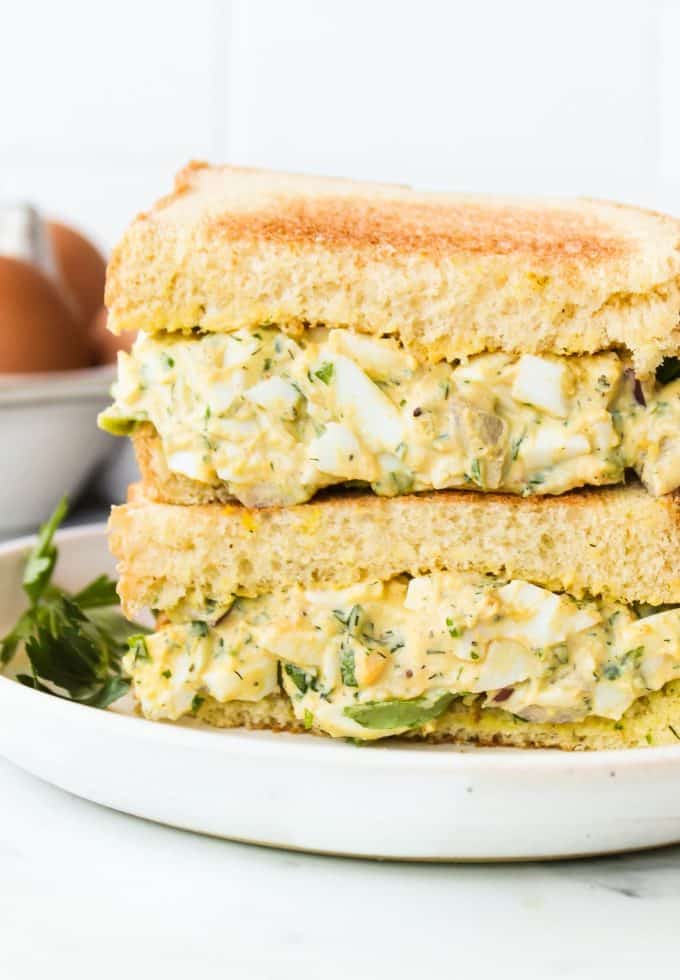 This egg salad is packed with herbs to give it a vibrant flavor that’s just a bit different than the classic egg salad. It’s so easy to make too!