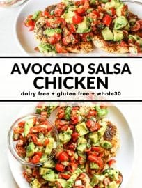 Beautifully seasoned sautéed chicken is topped with an easy avocado salsa in this quick entree! Ready in only 20 minutes!