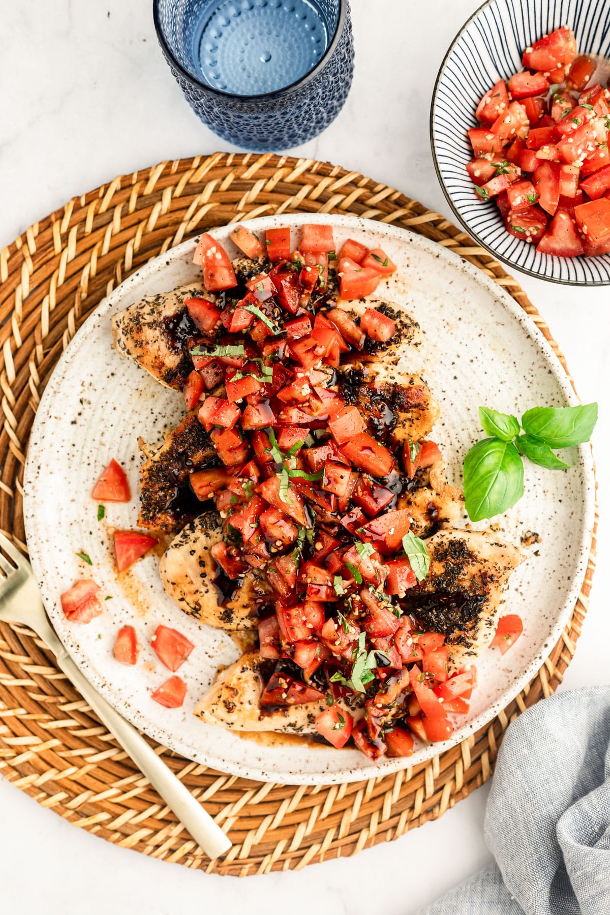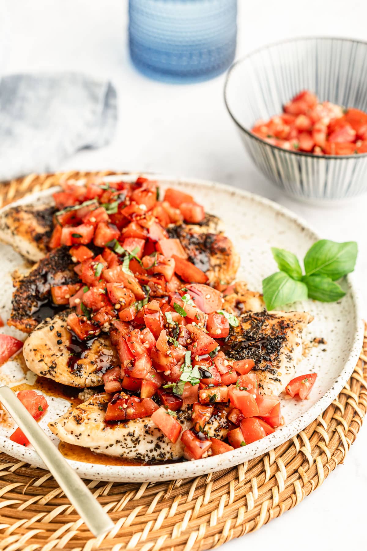 This was absolutely amazing and so so simple to make. I made the bruschetta while the chicken was cooking. Served over rice. The flavor was so good!
