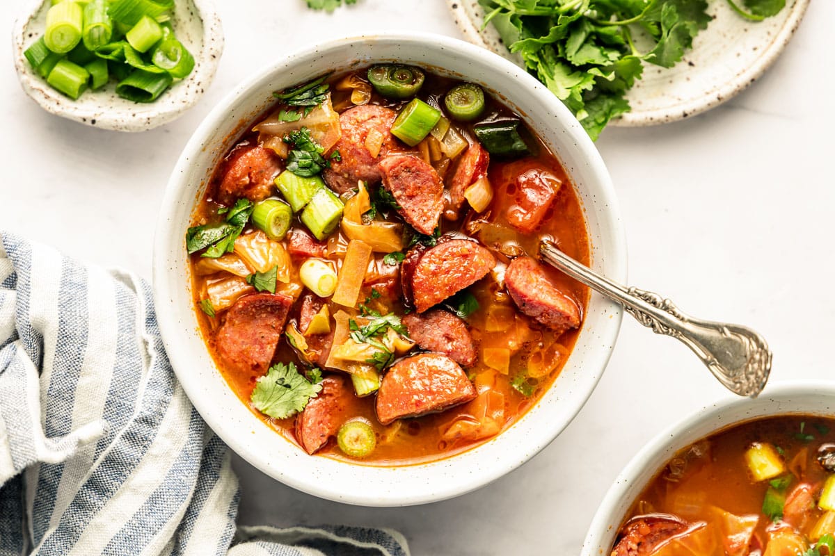 This spicy sausage and cabbage soup is light but very big on flavor. A total winner for anyone who wants some heat!