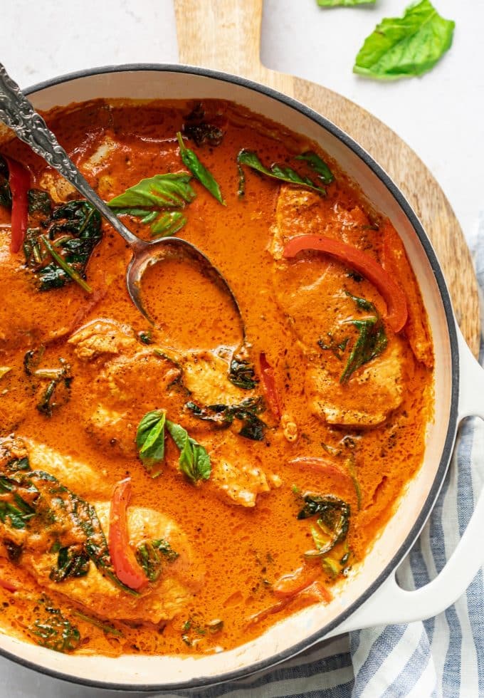 Sautéed Chicken in Creamy Red Pepper Sauce