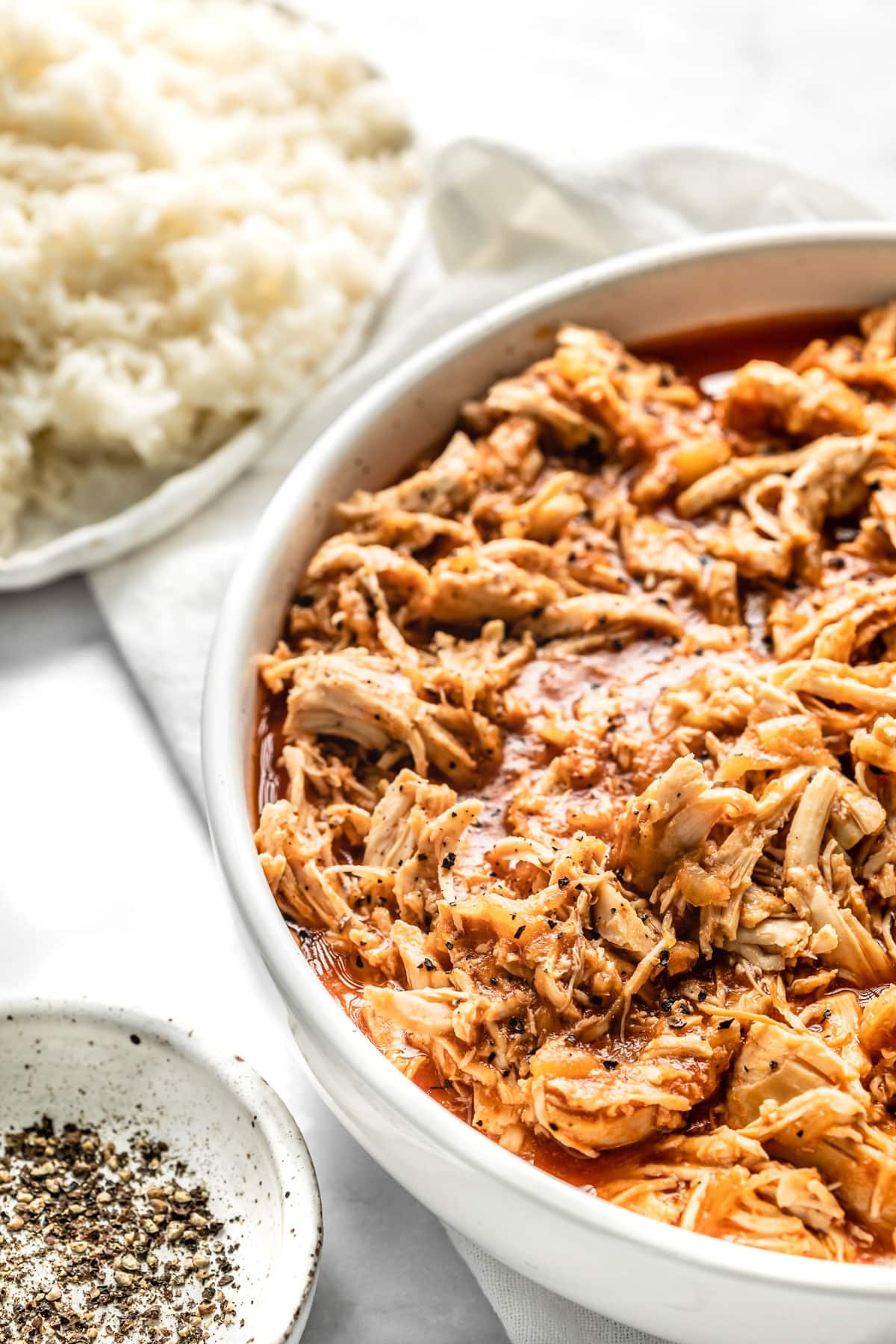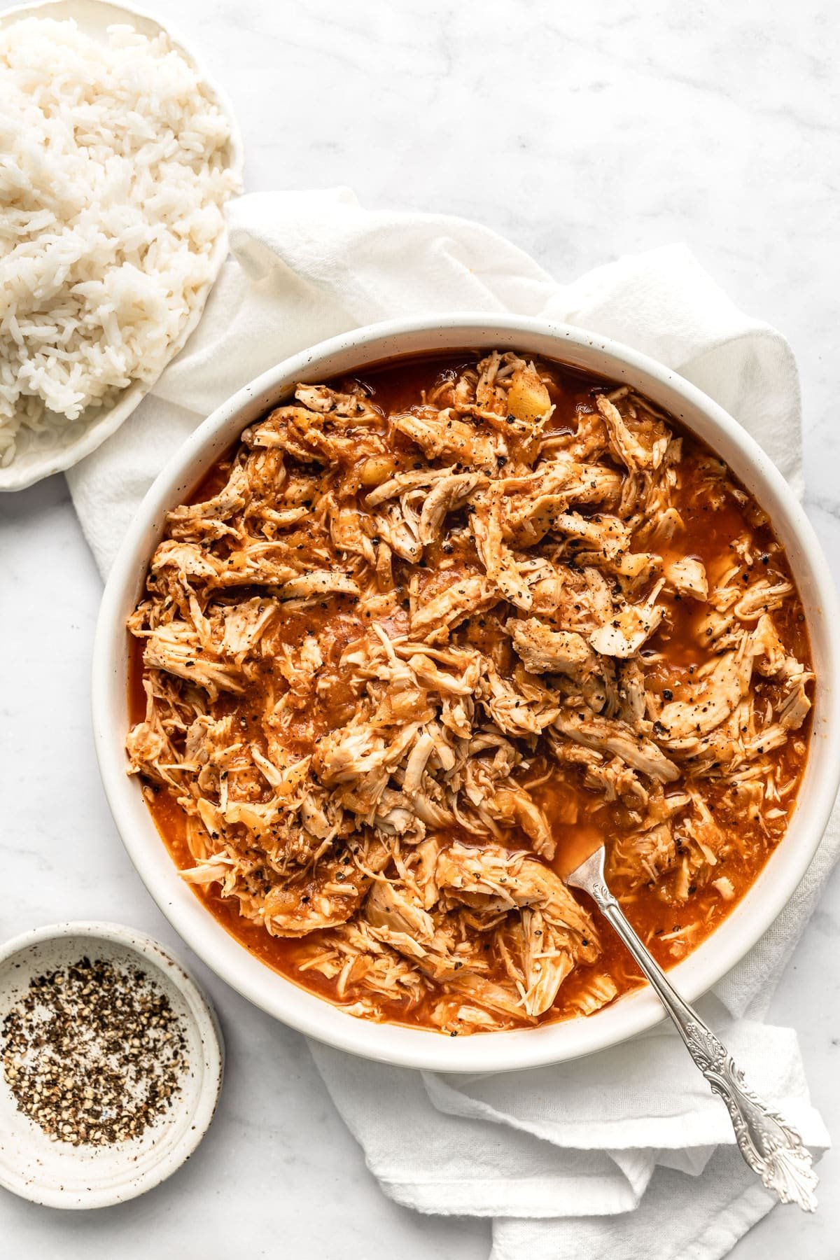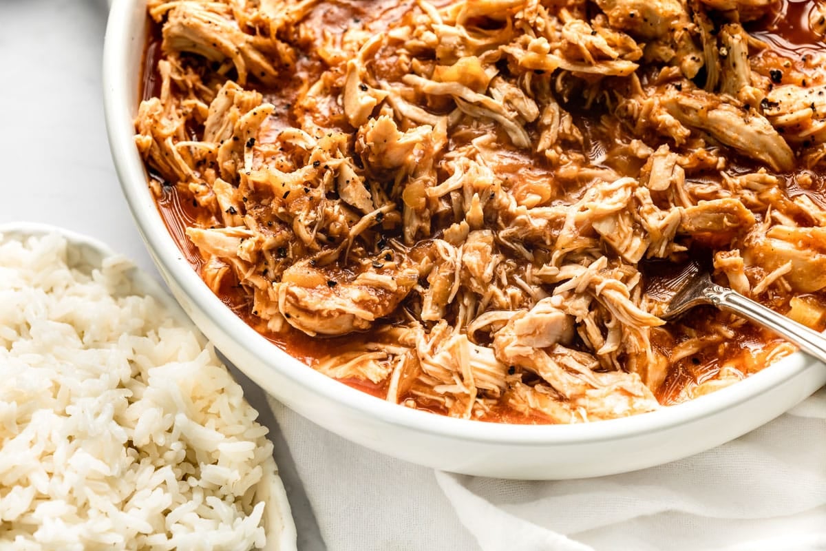 I know the popular answer right now is to use a hand mixer. Iโm personally not a fan. It feels like more work for me to set up the mixer and wash the paddles. Of course you can always use the mixer if you like! I prefer to use two large forks to shred chicken. It may feel a bit old fashioned, but its so effective and quick!