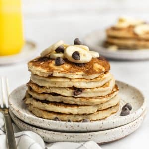 These fluffy banana pancakes require only 8 simple ingredients! They’re easy to make and perfect for a weekend breakfast! Or make extra and freeze them for a quick weekday breakfast you can make in advance.