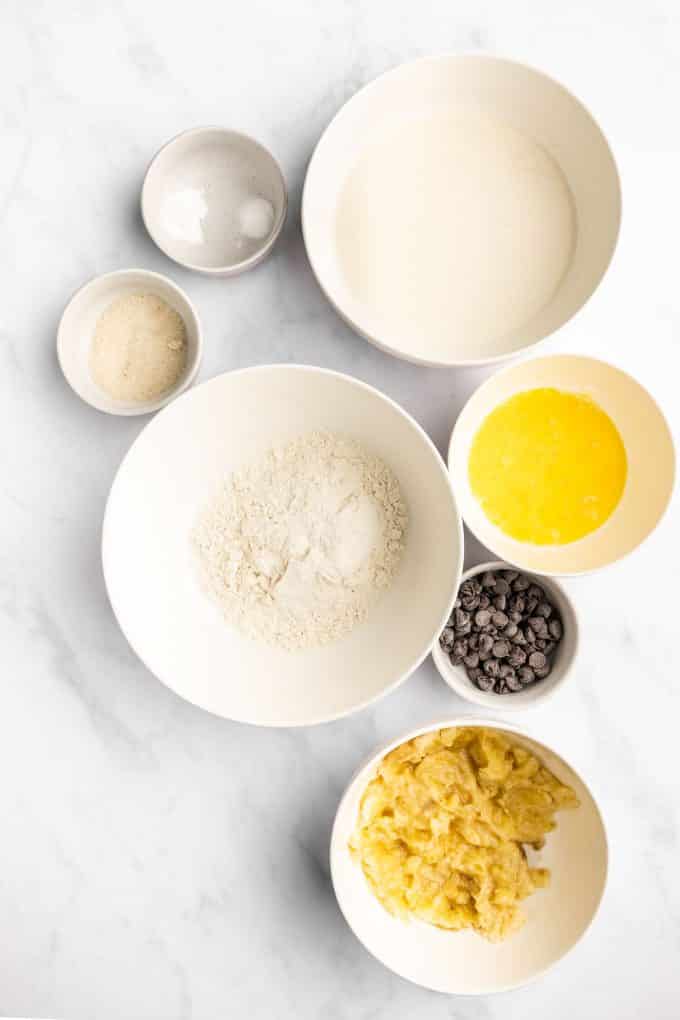 You can of course go the classic route and simply serve with a little butter and syrup. Or if you’re feeling especially fancy add sliced bananas and/or extra chocolate chips. My son’s eyes always go big when he sees those chocolate chips on his plate!