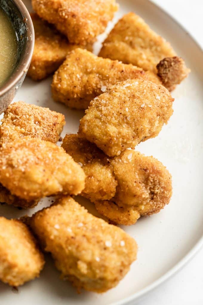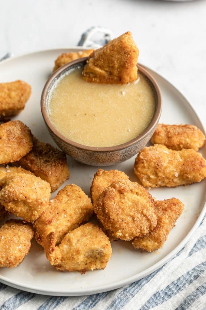 I love to pair these chicken nuggets with my 3-Ingredient Honey Mustard (pictured in the photos) but ketchup, ranch dressing, and barbecue sauce are also great dip options!