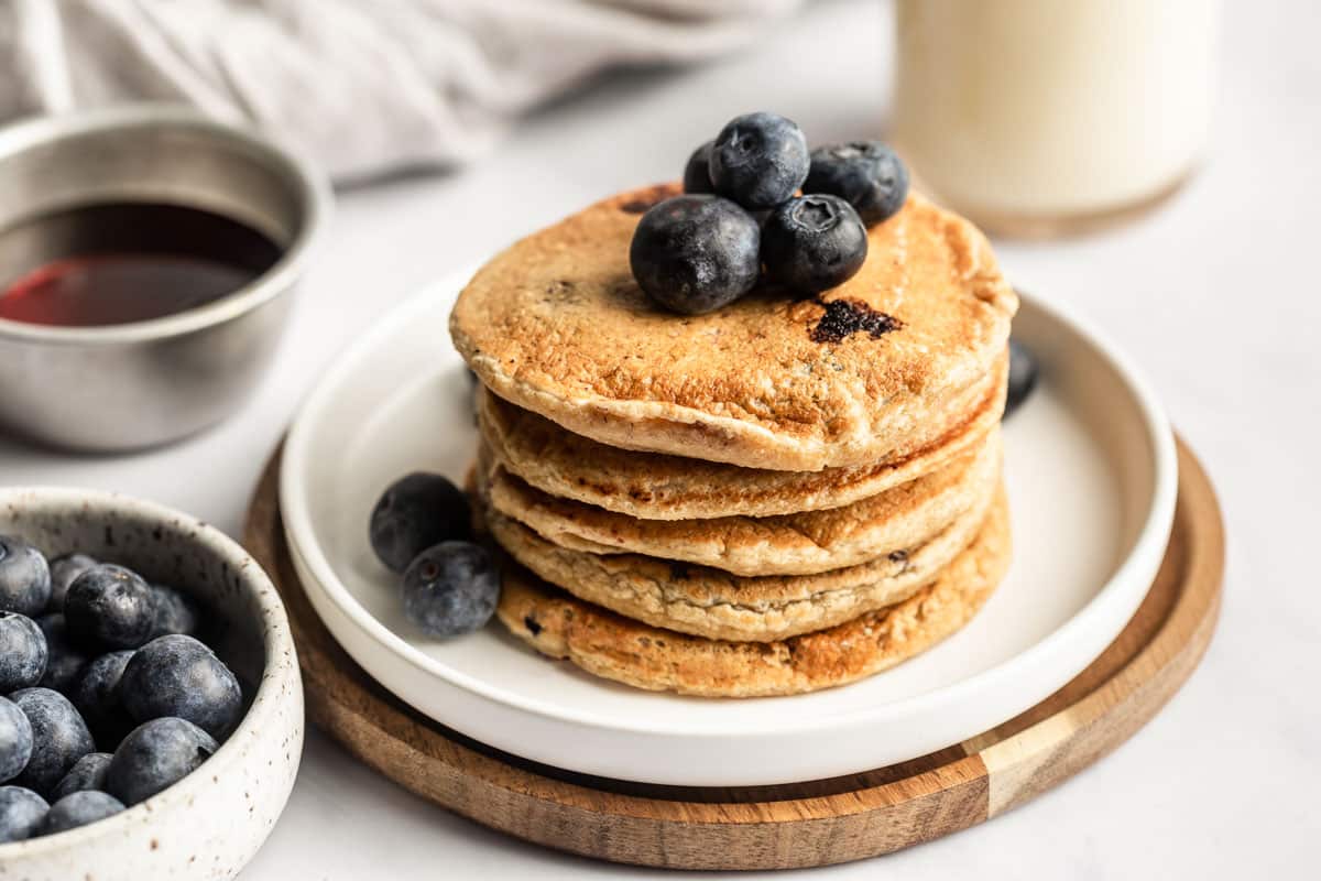 - Serve pancakes immediately with butter, maple syrup, and/or fresh blueberries on top.