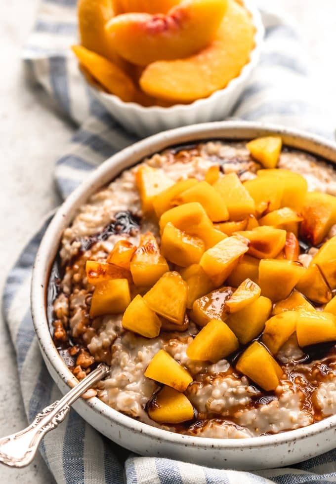 I make this oatmeal at least once a week. I especially love it when peaches are fresh in the summer. It’s so simple and so tasty!