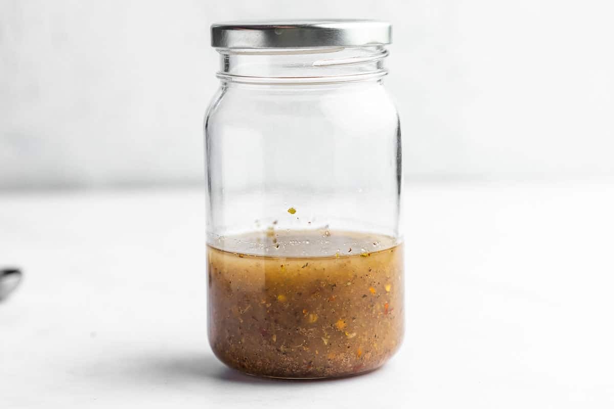 Store your leftover dressing in the refrigerator in an airtight container with a lid. I like to use a jar with a tight seal. I like to use a glass bottle or mason jar. This dressing can keep in the refrigerator for up to 2 weeks. The oil may solidify in the cold but it will return to normal if you leave it at room temperature for a few minutes. You’ll see some separation so shake before using.