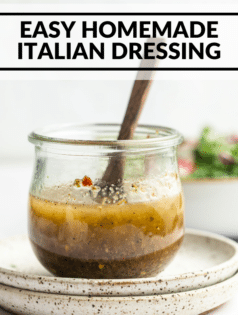 I’m a huge fan of homemade salad dressings. They’re so easy! Plus a homemade dressing is more flavorful than store-bought dressings but made with far better ingredients. All the ingredients in this easy homemade Italian dressing are clean. No junk. No artificial anything. Just the good stuff.